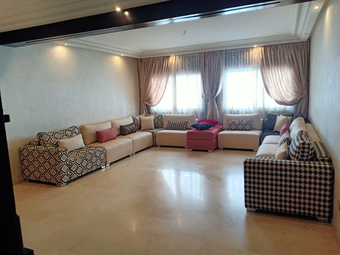 MAD 2,300,000AP1462 APPARTEMENT A VENDRE À PRINCESSES 163M 3 CH (d une superficie de 143 m2 HABITABLE + 20 METRES GARAGE ET BOX au sous sol,) situe a quartier les princesses 2 eme etage, compose d un double salon MAROCAIN ET